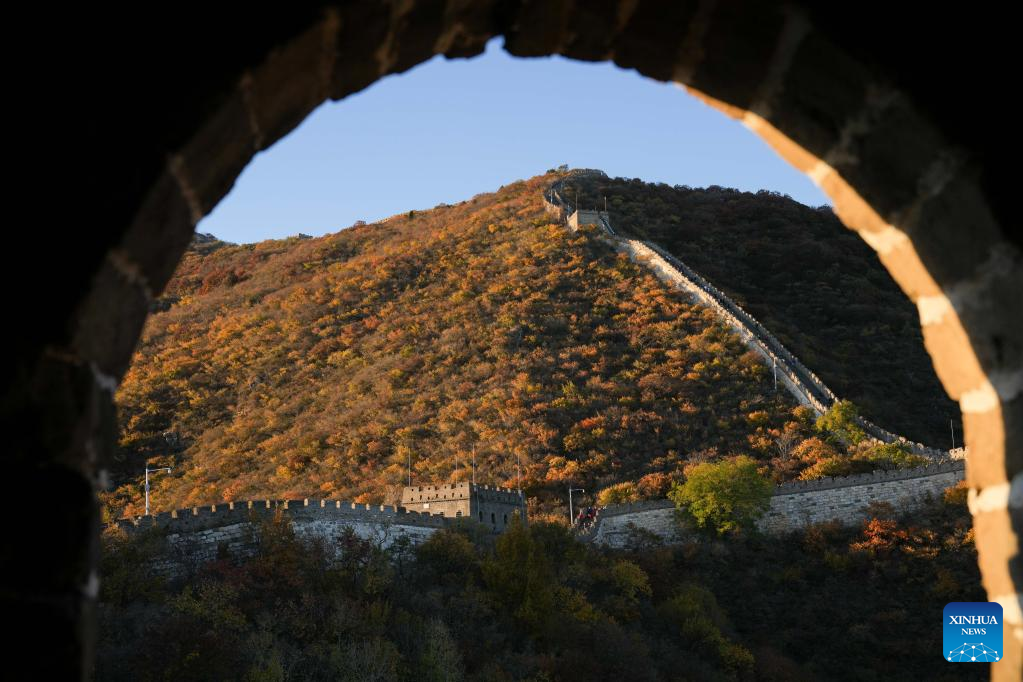 Tourists visit the Mutianyu section of the Great Wall in Beijing, capital of China, Oct. 22, 2022. (Xinhua/Ju Huanzong)