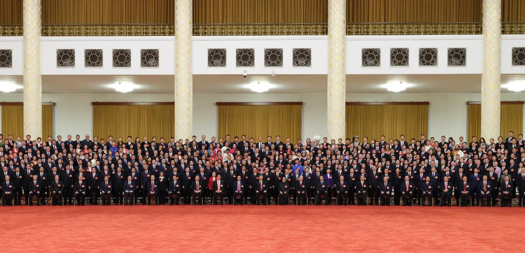 Xi, also Chinese president and chairman of the Central Military Commission, was greeted by long and warm applause at the Great Hall of the People. He had group photos taken with them.