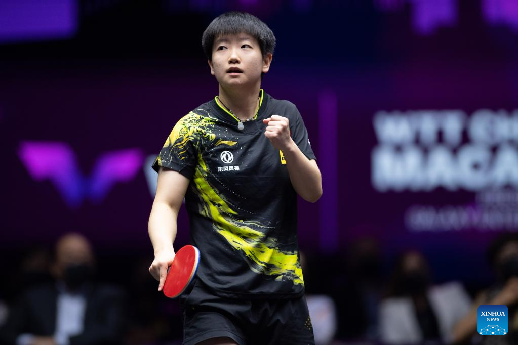MACAO, Oct. 23 (Xinhua) -- Chinese paddlers Wang Chuqin, Sun Yingsha were crowned in the men's and women's singles finals at the World Table Tennis (WTT) Champions Macao 2022 here on Sunday.