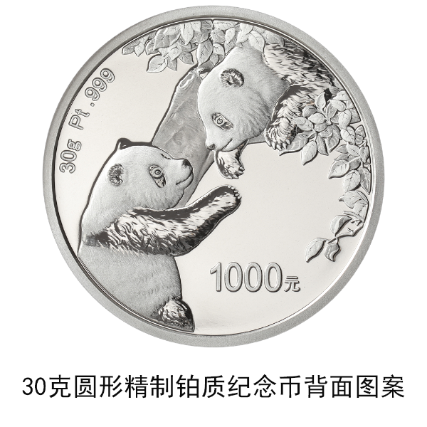 One of the refined platinum coins, with a diameter of 32 mm, contains 30 grams of 99.9 percent pure platinum and bears a denomination of 1,000 yuan. The maximum issuing number of the 30-gram platinum coin will be 5,000.