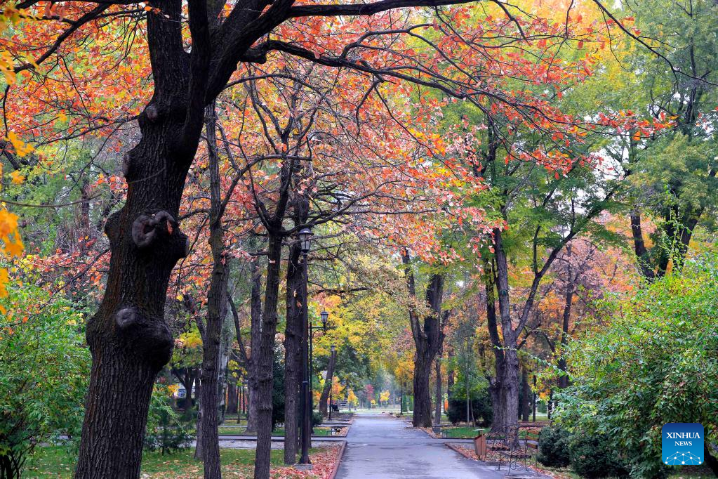 The autumn scenery is pictured at the Oak Park in Bishkek, Kyrgyzstan, Oct. 24, 2022. (Photo by Roman/Xinhua)