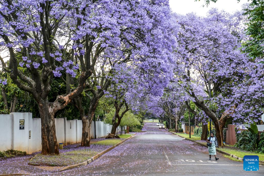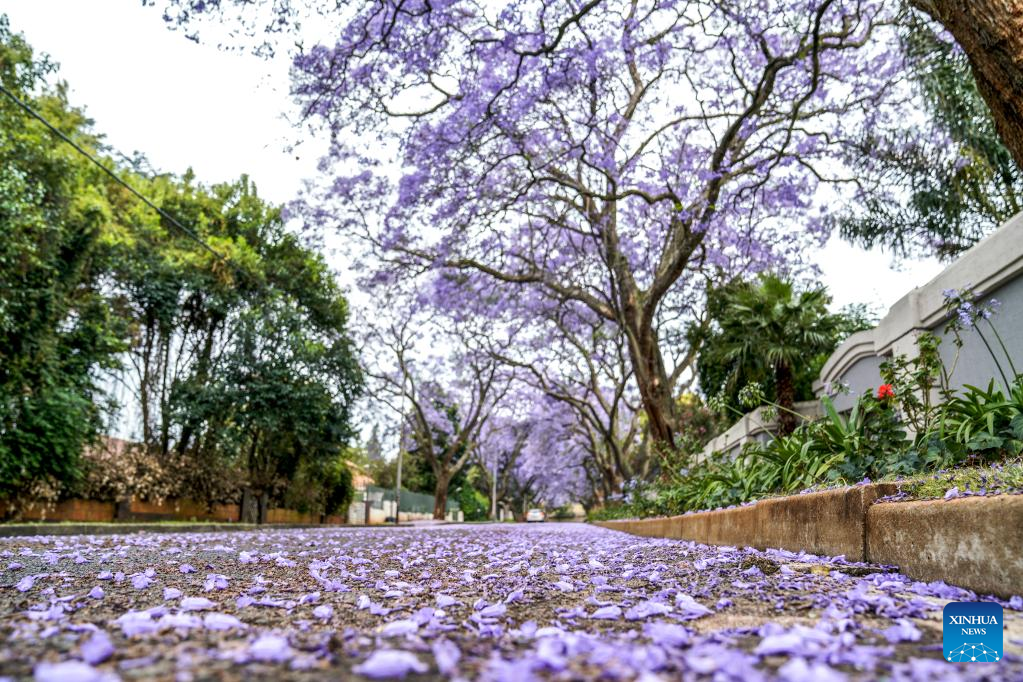 This photo taken on Oct. 24, 2022 shows jacaranda trees in full bloom in Johannesburg, South Africa. (Photo by Shiraaz Mohamed/Xinhua)