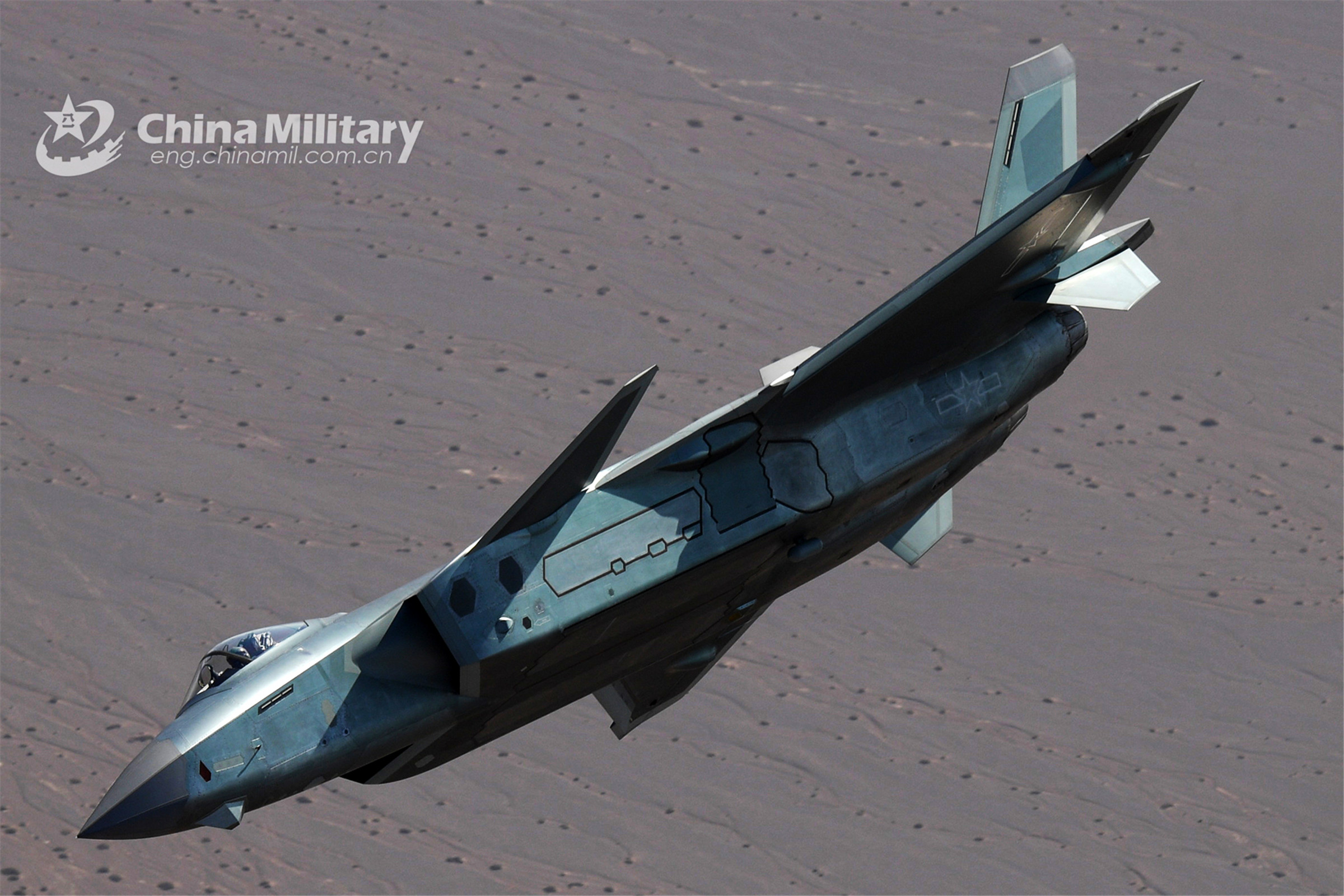 A J-20 fighter jet attached to the PLA Air Force makes a dive during a flight training mission. (eng.chinamil.com.cn/Photo by Yu Hongchun)