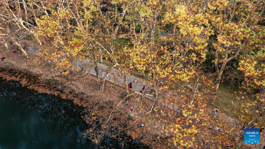 Tourists enjoy the autumn scenery of Huaxi national city wetland park in Guiyang, capital of southwest China's Guizhou Province, Oct. 25, 2022. (Xinhua/Tao Liang)