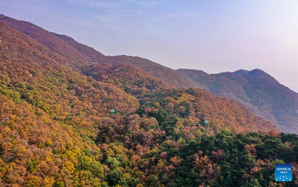 This aerial photo taken on Oct. 25, 2022 shows the scenery of Panshan Mountain scenic resort in Jizhou District, north China's Tianjin. (Xinhua/Sun Fanyue)