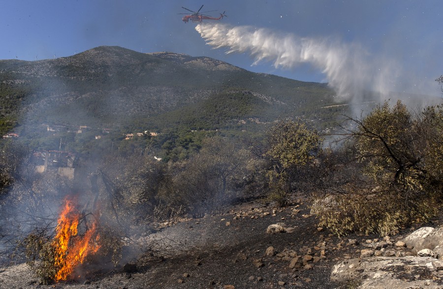 Photo taken on July 5, 2022 shows fire in a forest in Porto Germeno, Greece. (Photo by Marios Lolos/Xinhua)