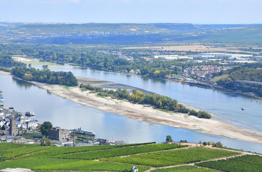 Photo taken on Aug. 16, 2022 shows River Rhine in Ruedesheim, Germany. (Xinhua/Ren Pengfei)