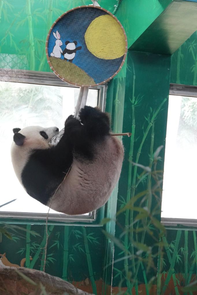 In Pics: A giant panda performs "flying yoga" in south China's Guangdong Province