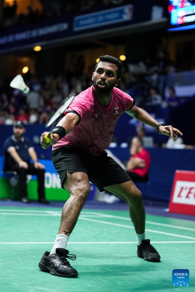 Prannoy Haseena Sunil competes during the men's singles round of 16 match between Lu Guangzu of China and Prannoy Haseena Sunil of India at the French Open 2022 badminton tournament in Paris, France, Oct. 27, 2022. (Photo by Tang Shi/Xinhua)