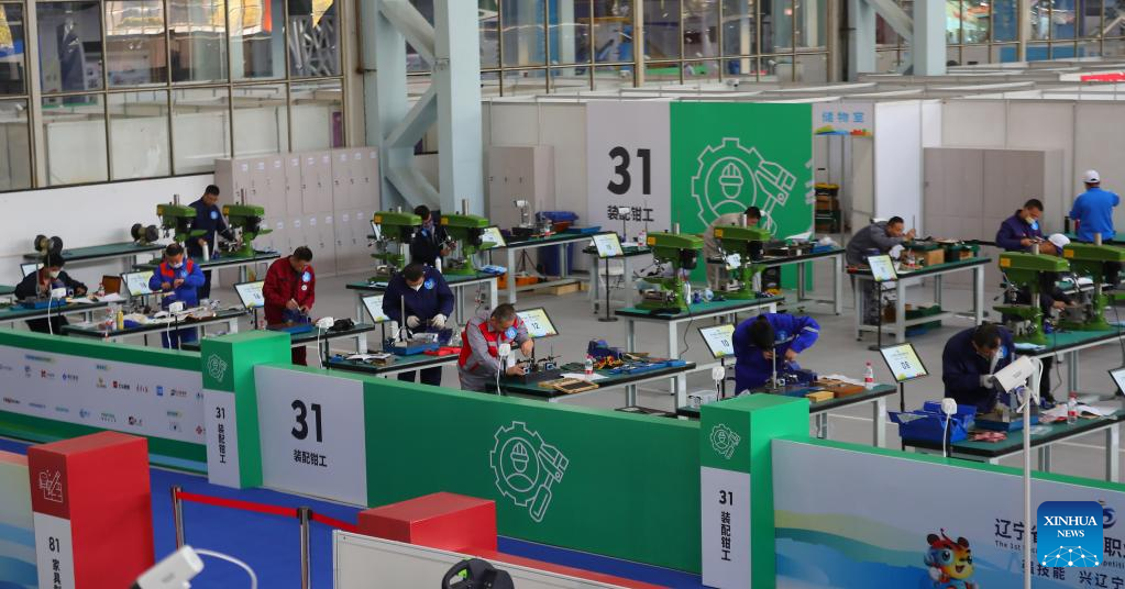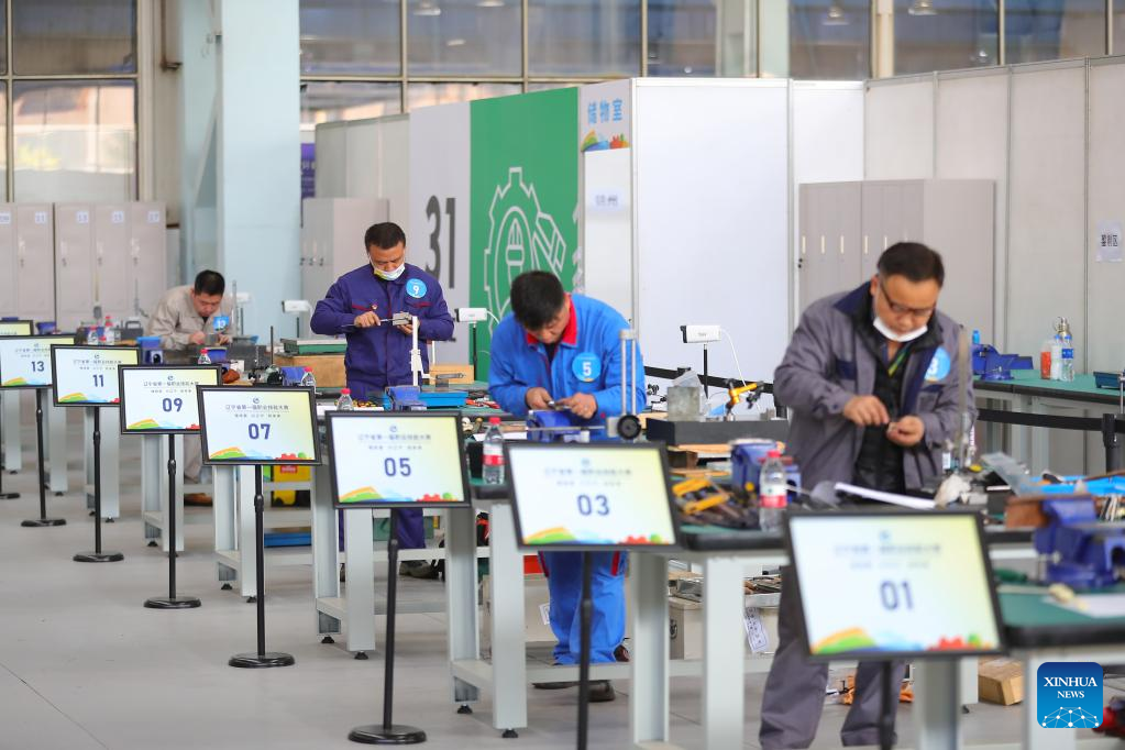 Contestants participate in the contest of benchwork during the 1st Vocational Skills Competition of Liaoning Province in Shenyang, northeast China's Liaoning Province, Oct. 27, 2022.
