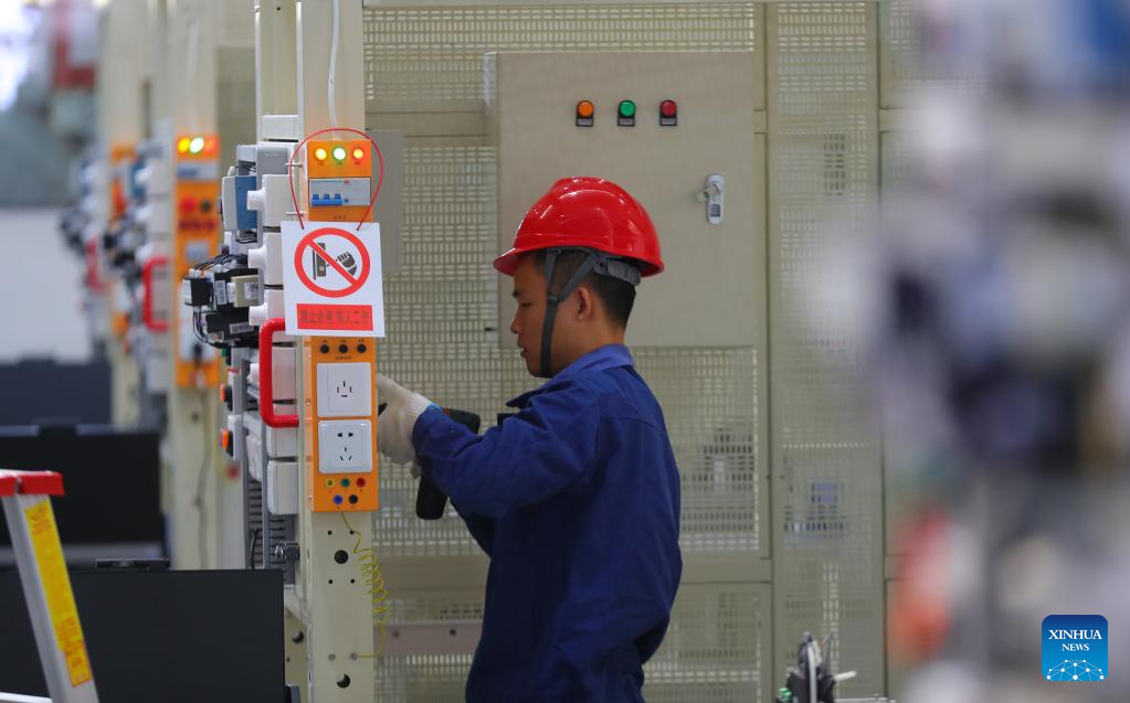 A contestant participates in the contest of electrical installation during the 1st Vocational Skills Competition of Liaoning Province in Shenyang, northeast China's Liaoning Province, Oct. 27, 2022.