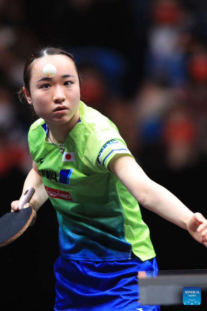 Ito Mima of Japan serves during the women's singles quarterfinal match against Wang Manyu of China at the WTT Cup Finals in Xinxiang, central China's Henan Province, Oct. 28, 2022. (Photo by Gao Zhiyong/Xinhua)