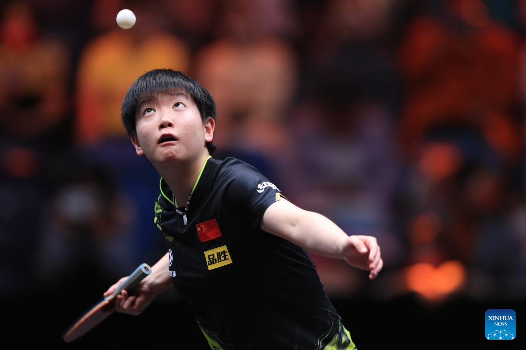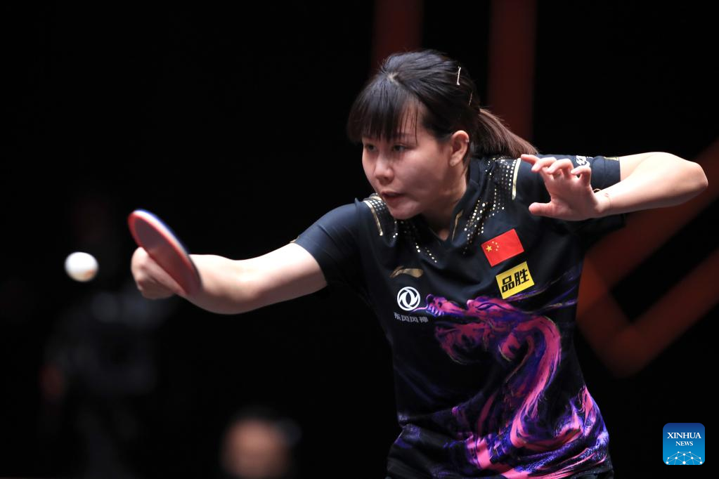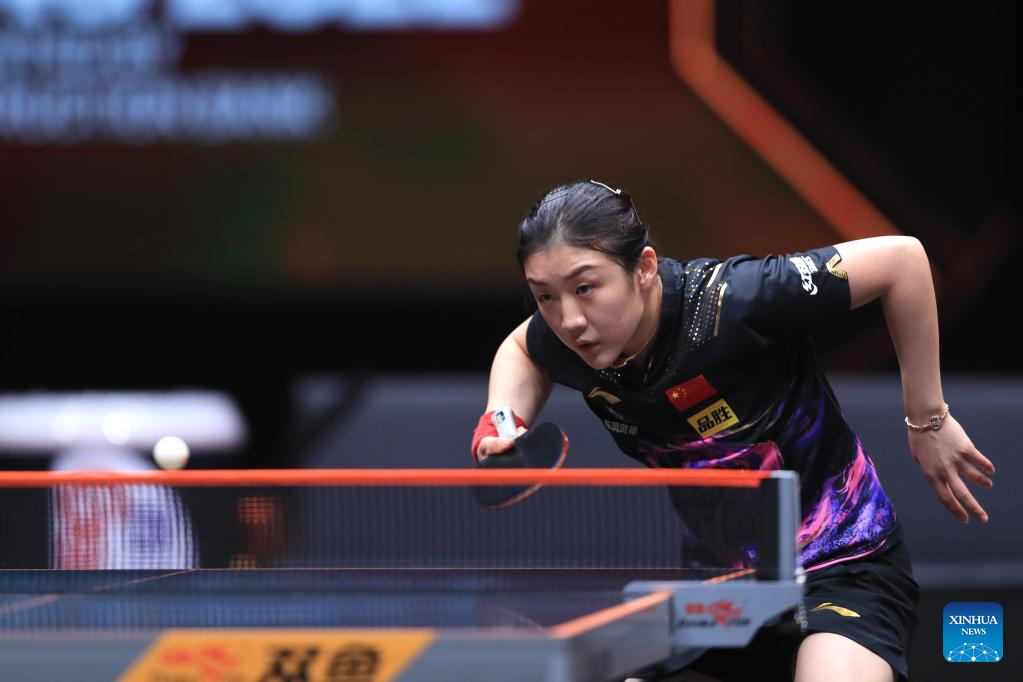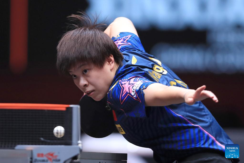Sun Yingsha of China returns the ball during the women's singles quarterfinal match against Ishikawa Kasumi of Japan at the WTT Cup Finals in Xinxiang, central China's Henan Province, Oct. 28, 2022. (Photo by Gao Zhiyong/Xinhua)