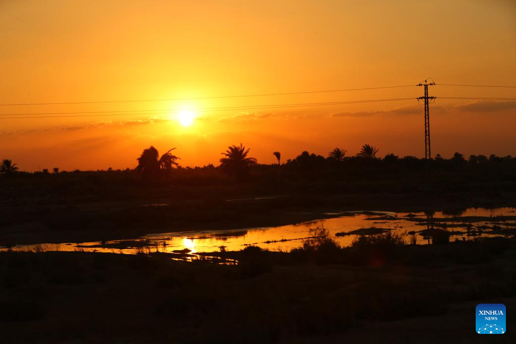 This photo taken on Oct. 29, 2022 shows the sunset scenery in Fayoum, Egypt. (Xinhua/Sui Xiankai)