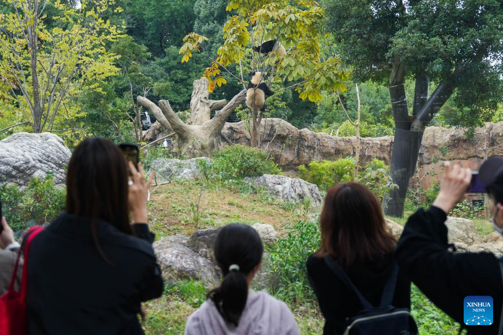 Visitors watch giant pandas at the Ueno Zoo in Tokyo, Japan, Oct. 28, 2022. To mark the 50th anniversary of the arrival of Chinese giant pandas in Japan, Tokyo's Ueno Zoo has recently set up a "Giant Panda Post Office". (Xinhua/Zhang Xiaoyu)