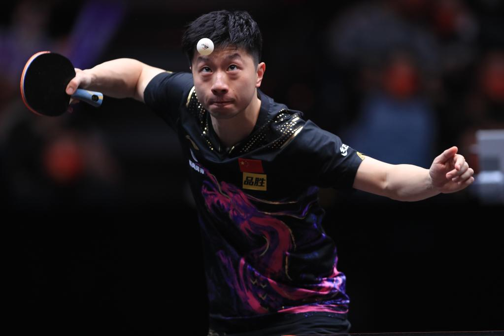 Ma Long of China returns the ball during the men's singles semifinal match against his teammate Wang Chuqin at the WTT Cup Finals in Xinxiang, central China's Henan Province, Oct. 29, 2022. (Photo by Gao Zhiyong/Xinhua)