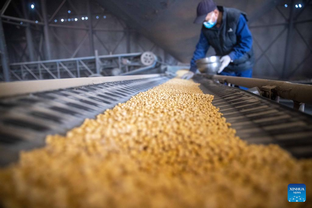This photo shows sorted soybeans at a grain trading company in Suihua, northeast China's Heilongjiang Province, Oct. 25, 2022. Autumn grain purchasing work is underway in Heilongjiang. (Xinhua/Zhang Tao)
