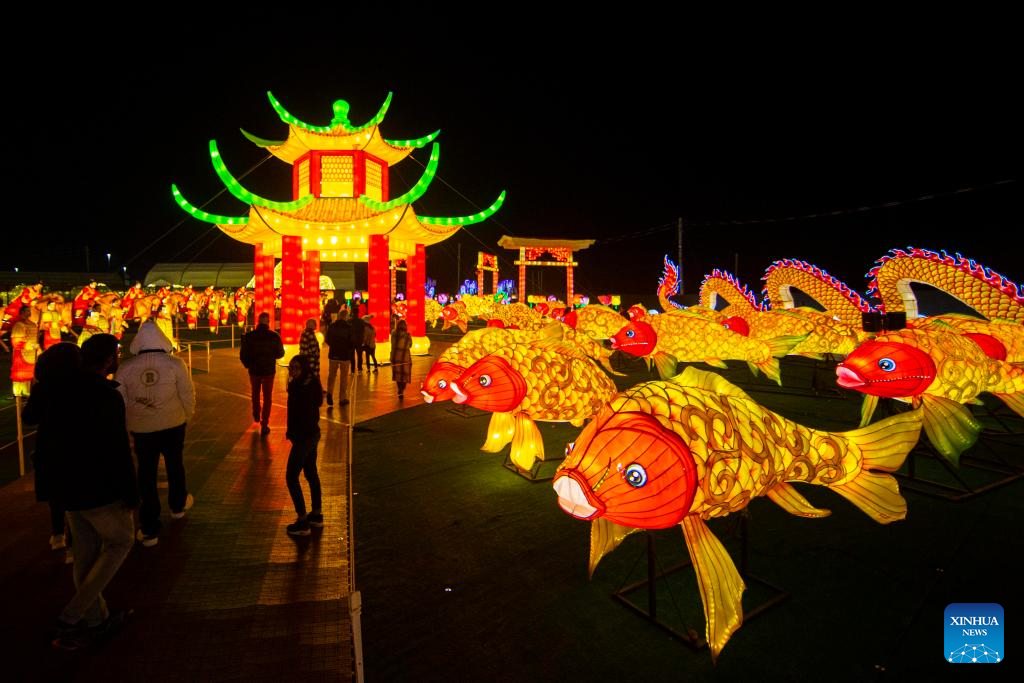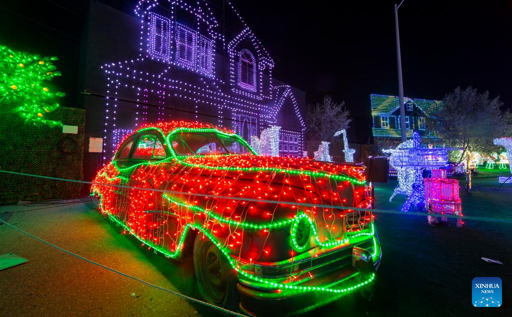 Light installations are seen during the Illumi: A Dazzling World of Lights show in Mississauga, Ontario, Canada, on Oct. 29, 2022. The light show will last until Jan. 8, 2023. (Photo by Zou Zheng/Xinhua)