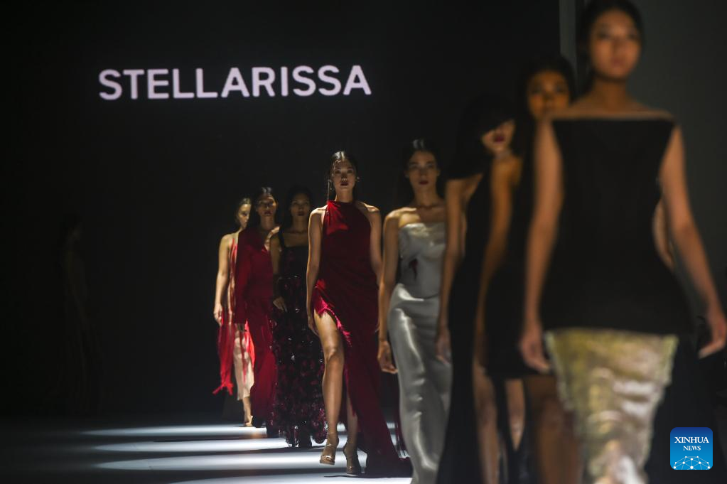 Models present creations by designer Stella Rissa during the last day of Jakarta Fashion Week 2023 in Jakarta, Indonesia, Oct. 30, 2022. (Xinhua/Zulkarnain)