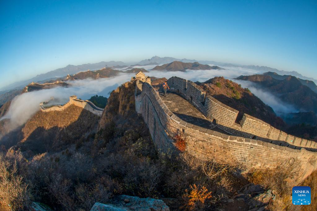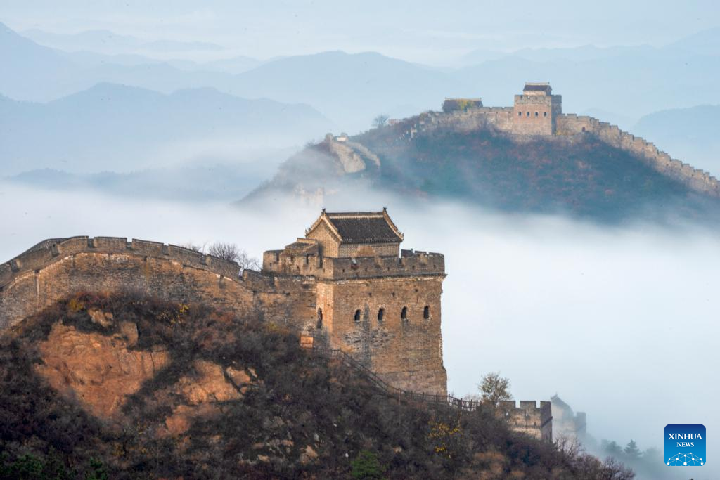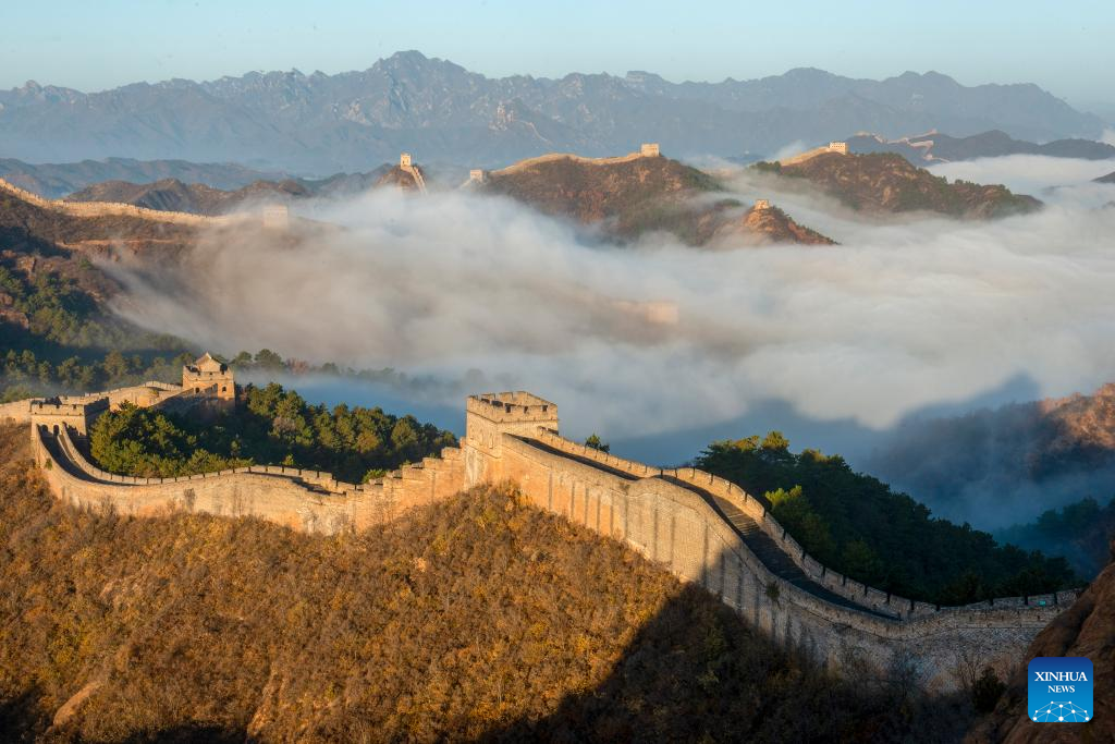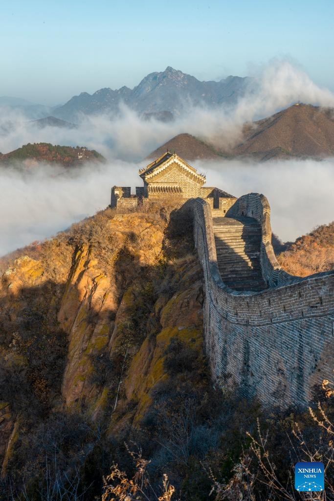This photo taken on Oct. 31, 2022 shows the Jinshanling section of the Great Wall amid clouds in Luanping County, north China's Hebei Province. (Photo by Zhou Wanping/Xinhua)