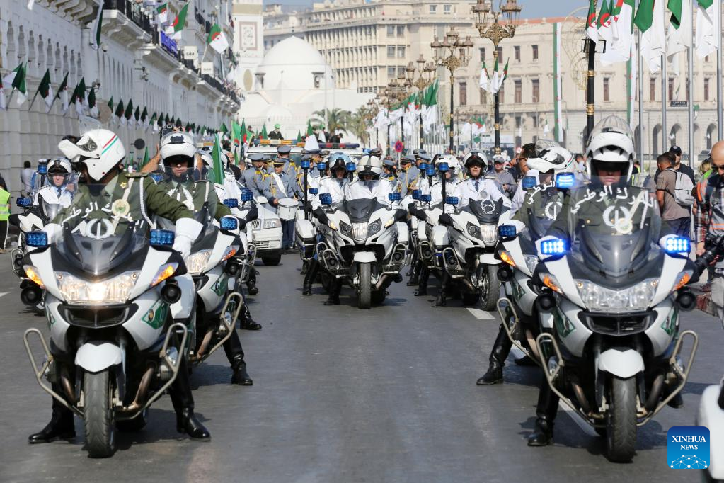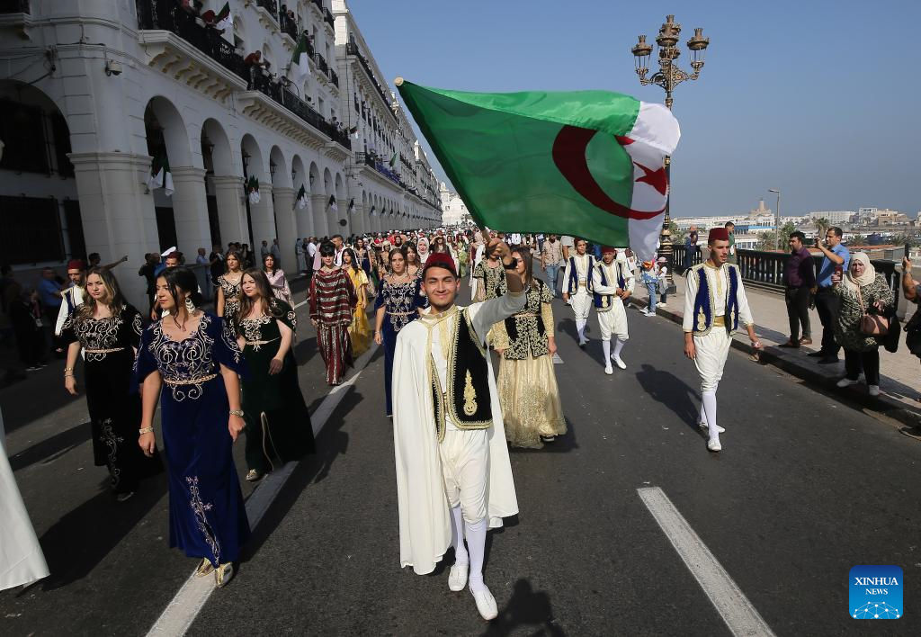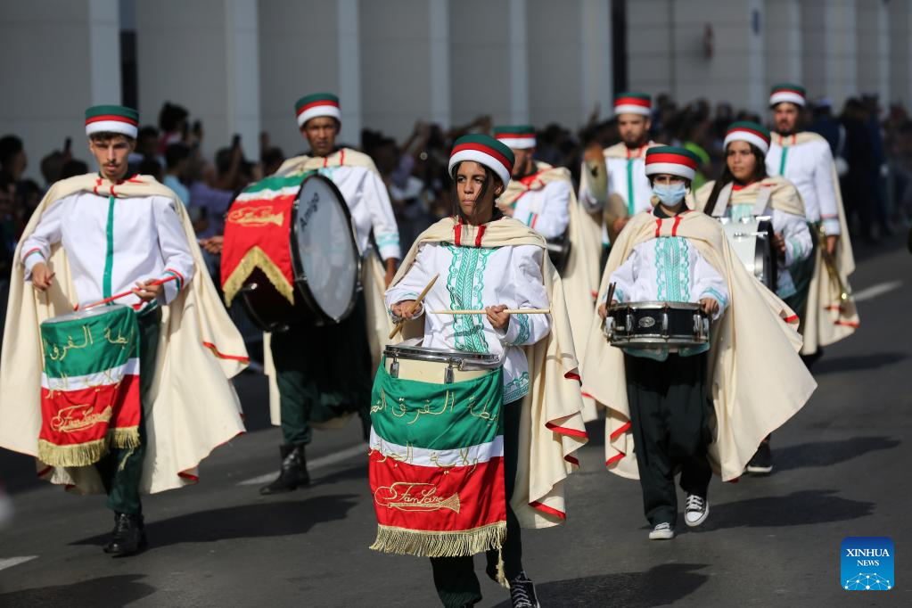 People take part in a parade to celebrate the National Day in Algiers, Algeria, Oct. 31, 2022. (Xinhua)