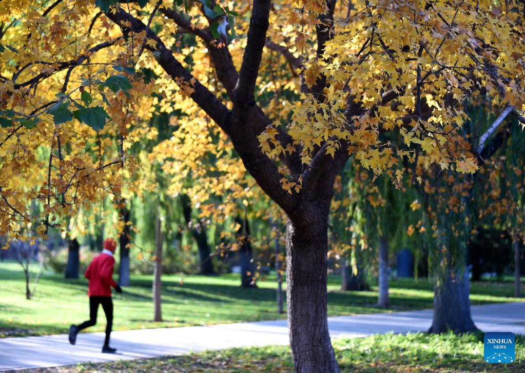 This photo taken on Nov. 1, 2022 shows the autumn scenery near the Military Museum of the Chinese People's Revolution in Beijing, capital of China. (Xinhua/Luo Xiaoguang)