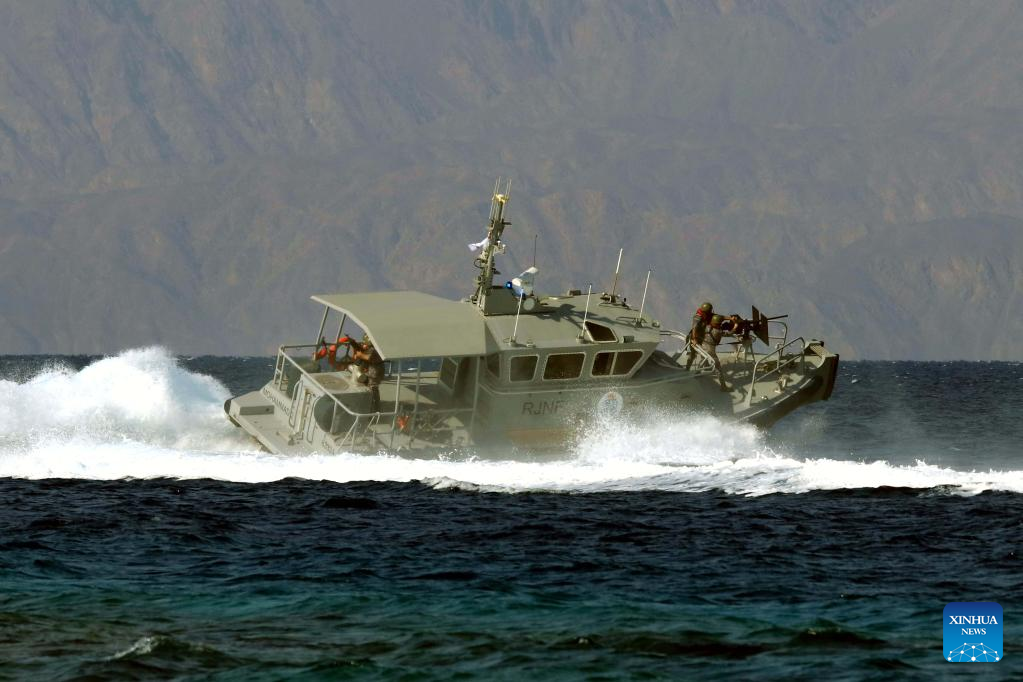 Jordanian special forces take part in a drill at the opening ceremony of the 13th Special Operations Forces Exhibition and Conference (SOFEX) in Aqaba, Jordan, on Nov. 1, 2022. The 13th Special Operations Forces Exhibition and Conference (SOFEX) kicked off in Jordan's Aqaba on Tuesday with the participation of more than 300 companies from 38 countries. (Photo by Mohammad Abu Ghosh/Xinhua)