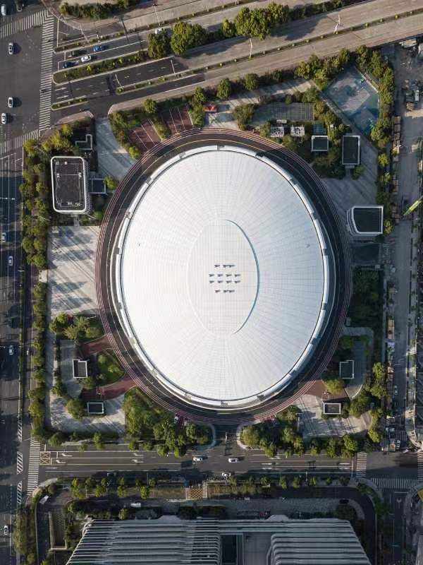 An aerial view of Binjiang Stadium in Hangzhou which resembles the number "0". (Photo/Zhou Jiawei)