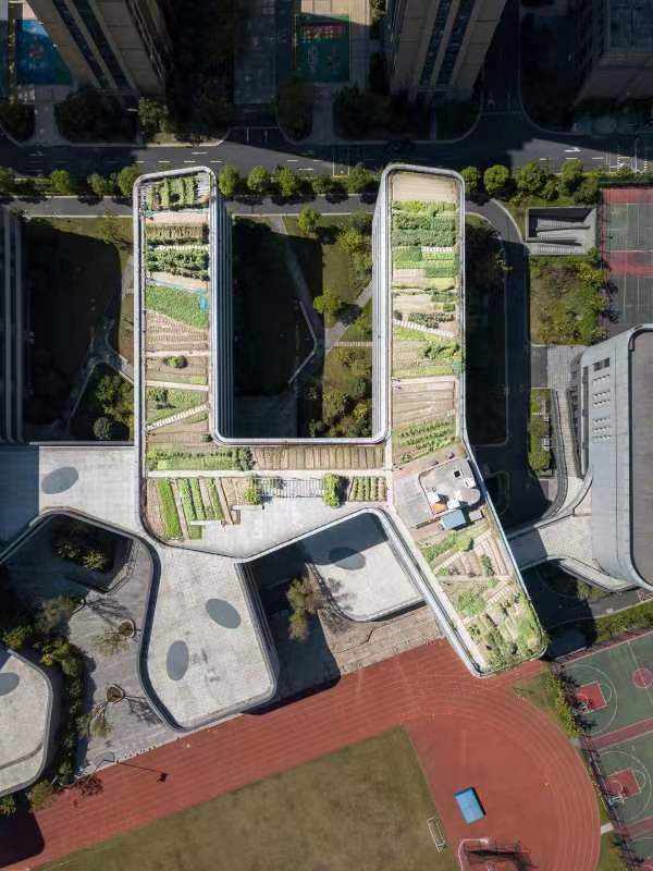 An aerial view of a primary school in Hangzhou which resembles the number "2". (Photo/Zhou Jiawei)