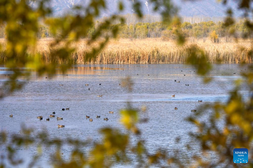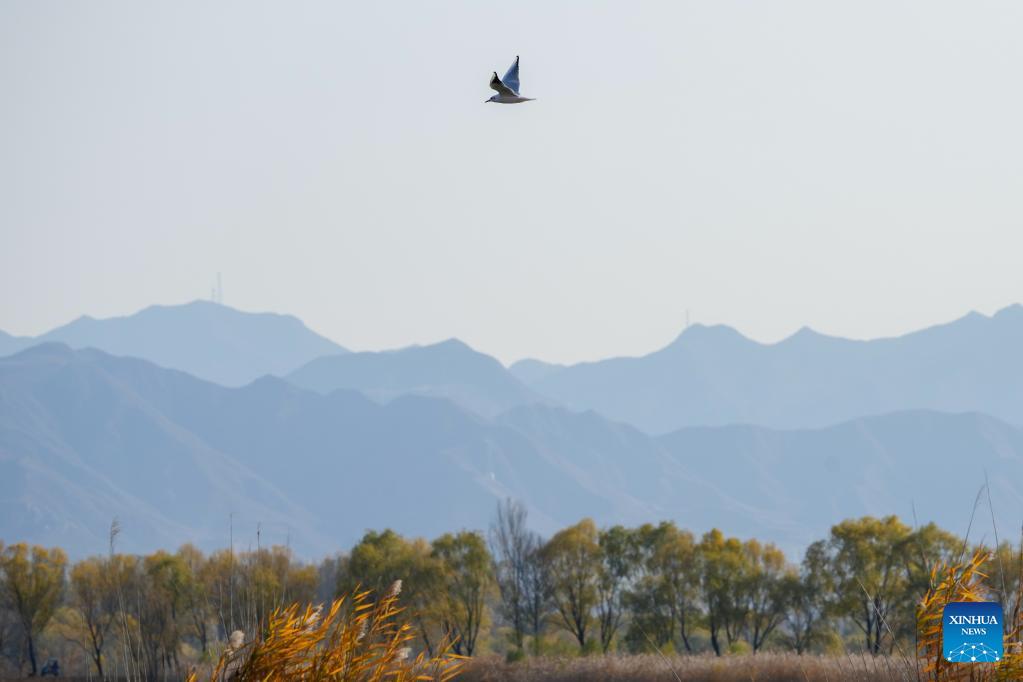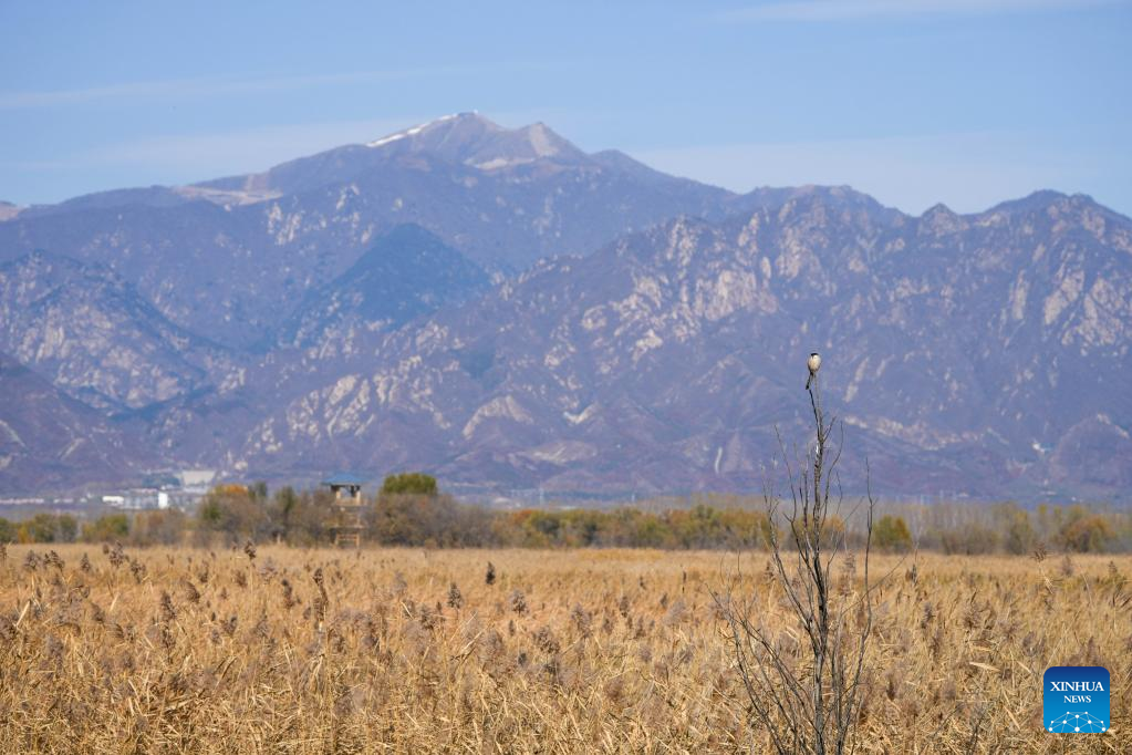 This photo taken on Nov. 1, 2022 shows the view of Yeya (Wild Duck) Lake national wetland park in Yanqing District of Beijing, capital of China. Yeya Lake Wetland Reserve became Beijing's first wetland conservation area in 1997. It functions as an ecological shield for Beijing, protecting the city's water source and providing a habitat for wild animals. (Xinhua/Ju Huanzong)