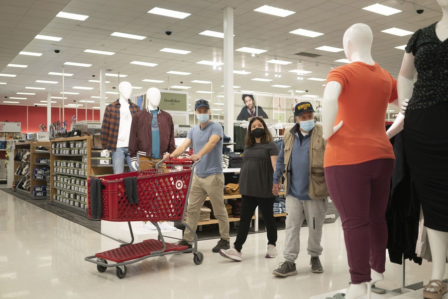 People shop at a supermarket in San Mateo, California, the United States, Sept. 13, 2022. (Photo by Li Jianguo/Xinhua)