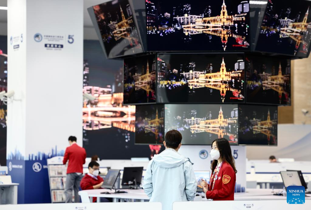 The media center of the 5th CIIE opened on Friday to provide services for journalists. (Xinhua/Dai Tianfang)