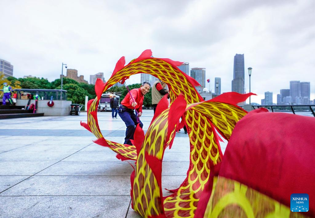 Residents enjoy outdoor activities at the Bund in east China's Shanghai, Nov. 4, 2022. The fifth China International Import Expo (CIIE) is held in Shanghai from Nov. 5 to 10. (Photo by He Zhongming/Xinhua)