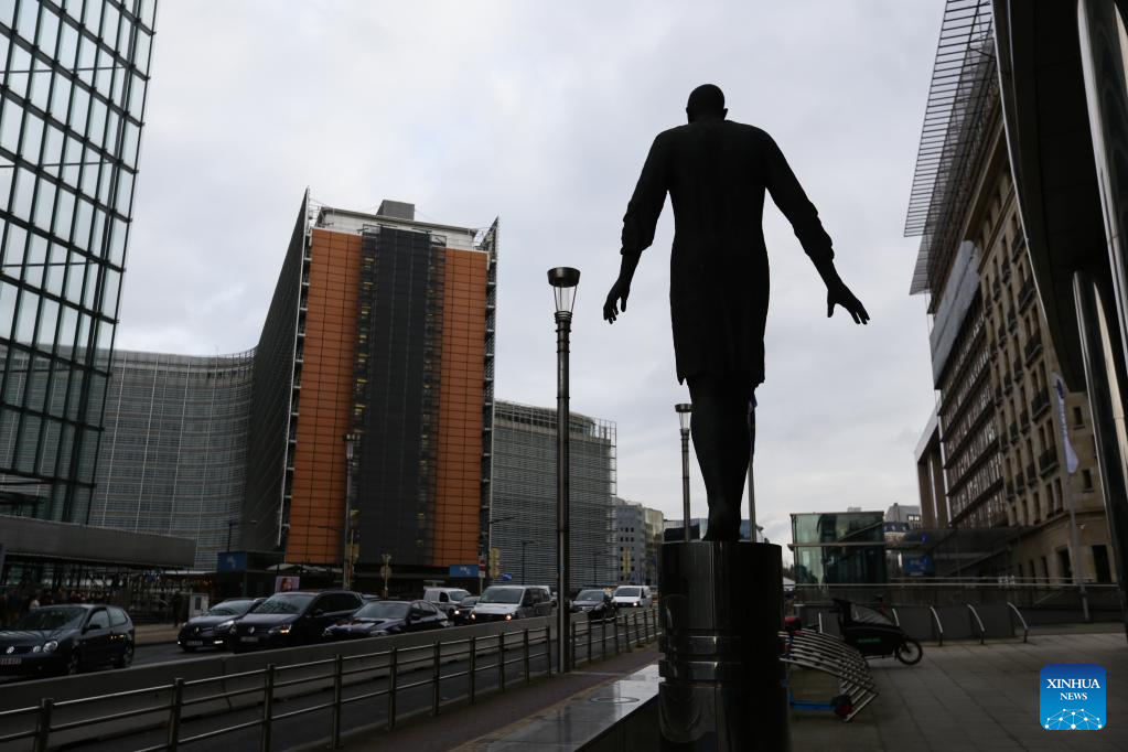 Vehicles drive past the European Commission building in Brussels, Belgium, on Nov. 4, 2022. October's year-on-year inflation rate climbed to 10.7 percent in the eurozone, from 9.9 percent in September. (Xinhua/Zheng Huansong)