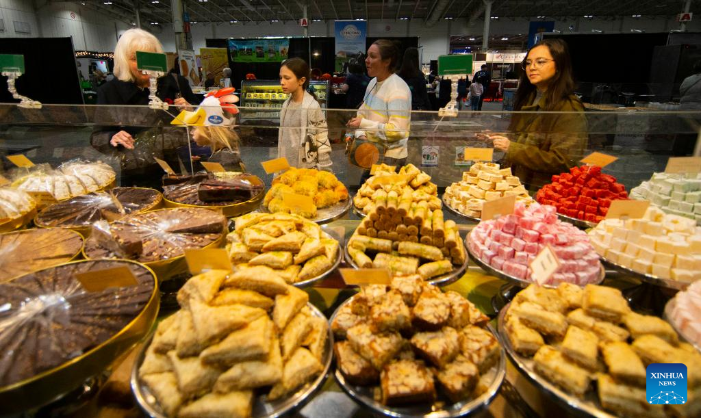 People visit a food stand at the Royal Agricultural Winter Fair in Toronto, Canada, on Nov. 4, 2022. As a combined indoor agricultural fair and international equestrian competition, the ten-day annual event kicked off here on Friday to celebrate its 100th anniversary. (Photo by Zou Zheng/Xinhua)