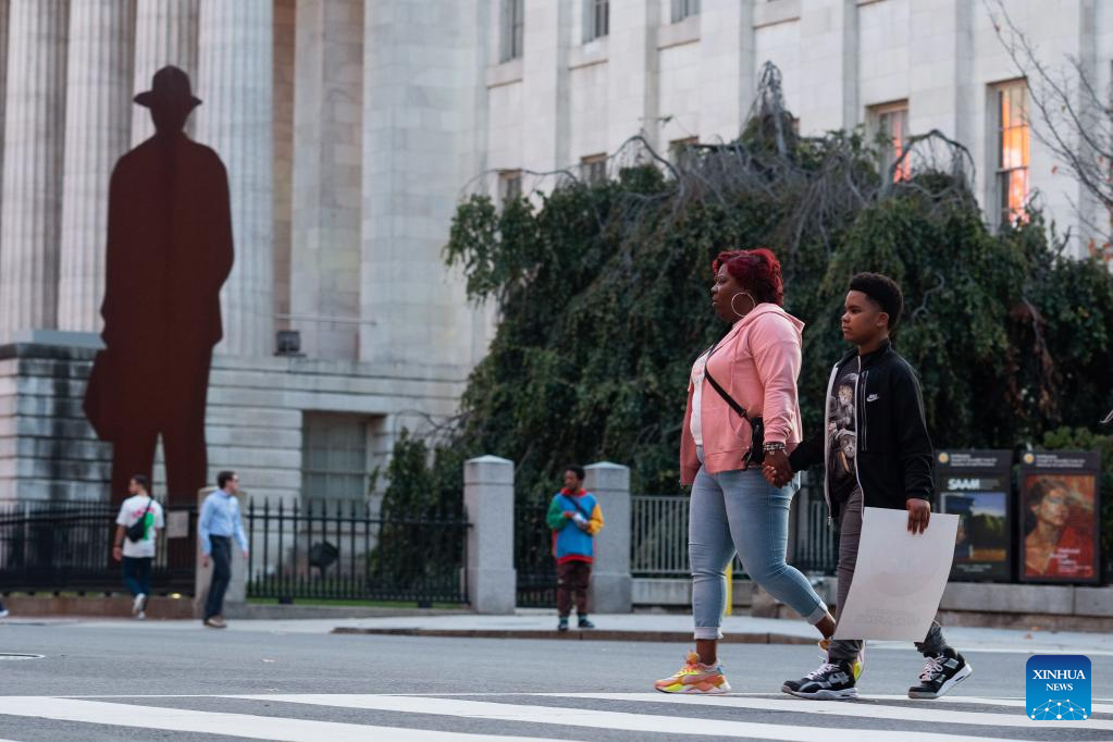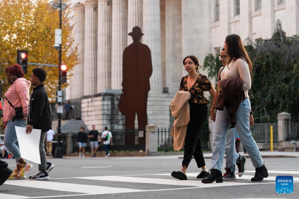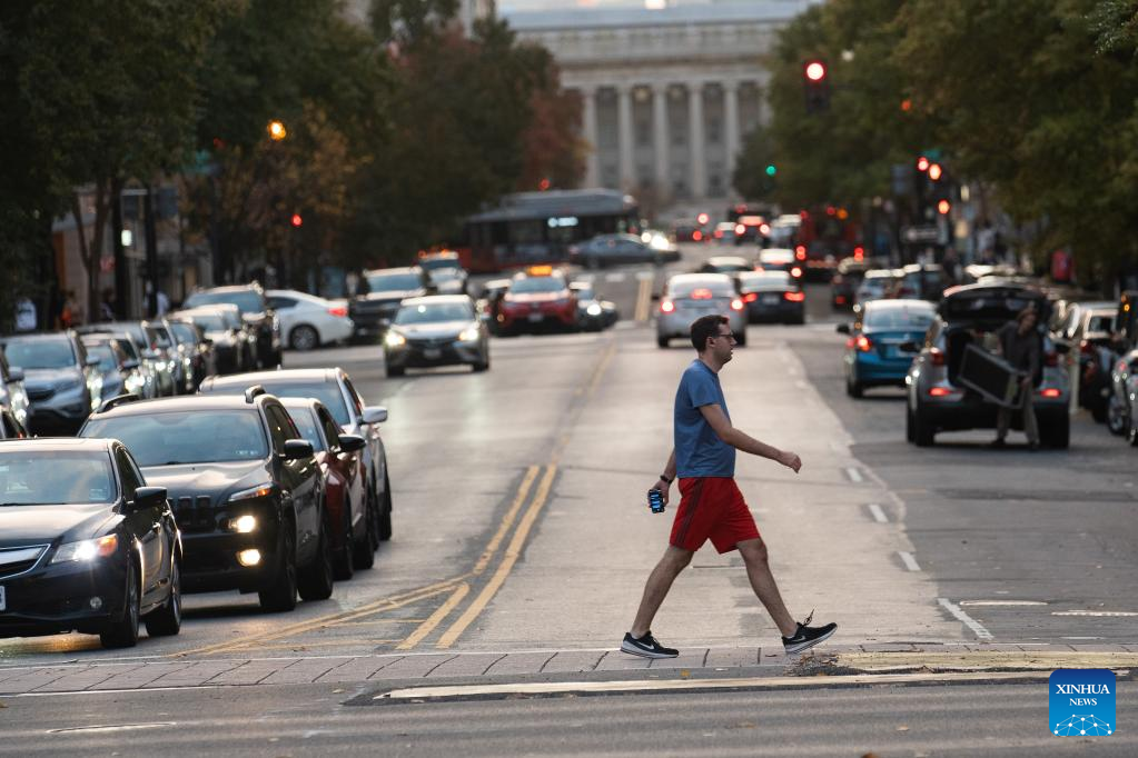 People walk across a street in Washington, D.C., the United States, Nov. 4, 2022. (Xinhua/Liu Jie)