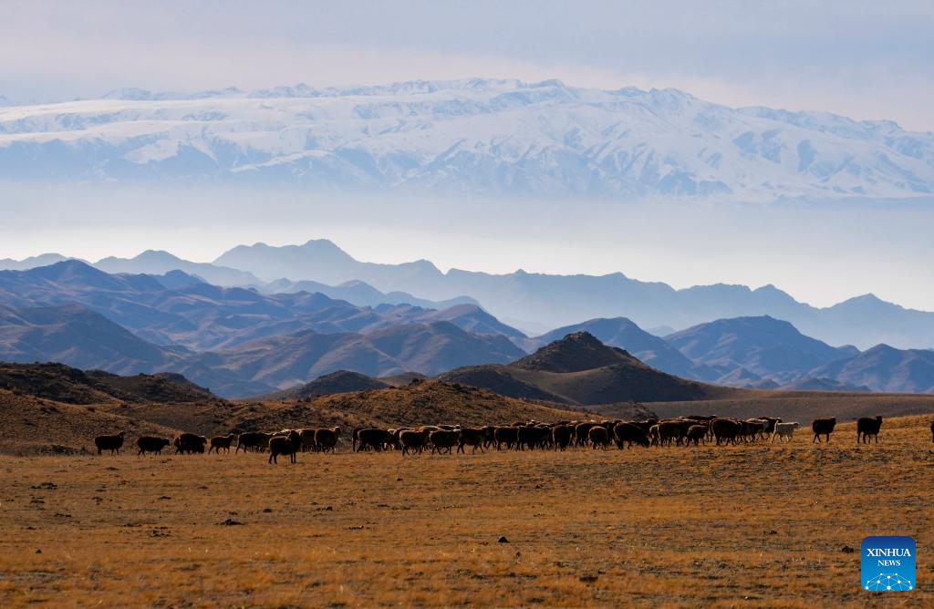 This photo taken on Nov. 4, 2022 shows a view of a winter pasture in the Barlik Mountain area in Yumin County, northwest China's Xinjiang Uygur Autonomous Region.