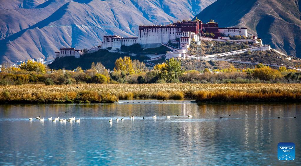 This photo taken on Nov. 5, 2022 shows the Lhalu wetland in Lhasa, southwest China's Tibet Autonomous Region. (Xinhua/Lyu Qiuping)
