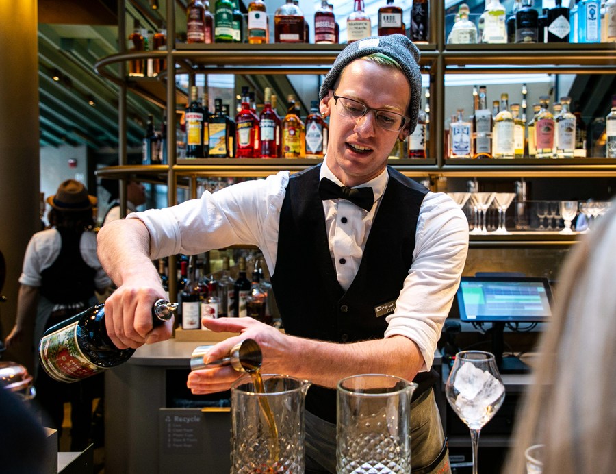 A bartender mixes a drink at the new Starbucks Reserve Roastery on Michigan Avenue in Chicago, the United States, on Nov. 25, 2019. (Photo by Joel Lerner/Xinhua)