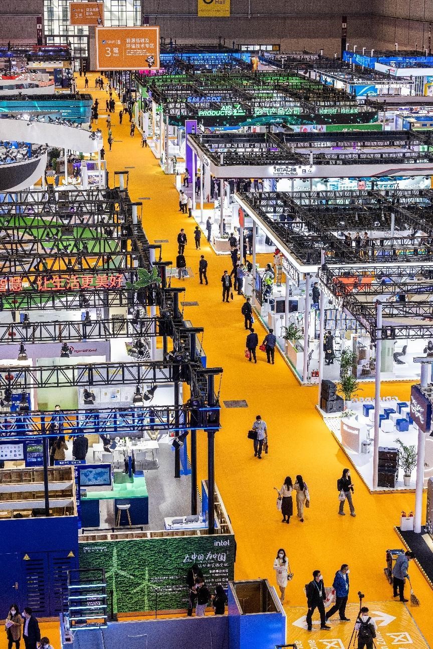 Photo taken on Nov. 5, 2022 shows the Intelligent Industry and Information Technology exhibition area of the fifth China International Import Expo. (People's Daily/Zhang Wujun)