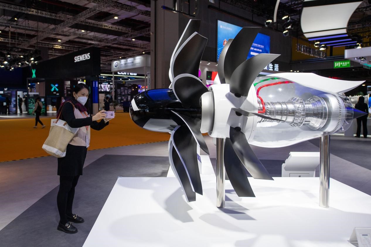A model of the Revolutionary Innovation for Sustainable Engines program is exhibited at the booth of General Motors at the fifth China International Import Expo, Nov. 5, 2022. (People's Daily Online/Weng Qiyu)