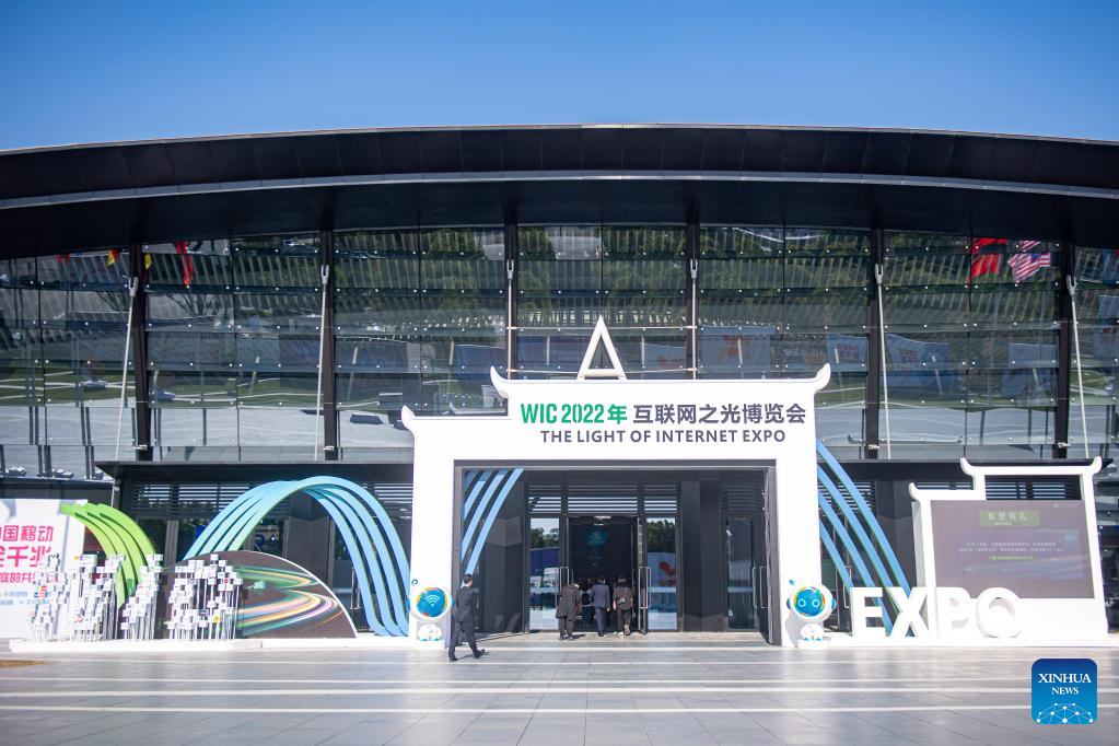 This photo taken on Nov. 8, 2022 shows the venue of the Light of Internet Expo in Wuzhen, east China's Zhejiang Province. The expo kicked off here on Tuesday. (Xinhua/Jiang Han)