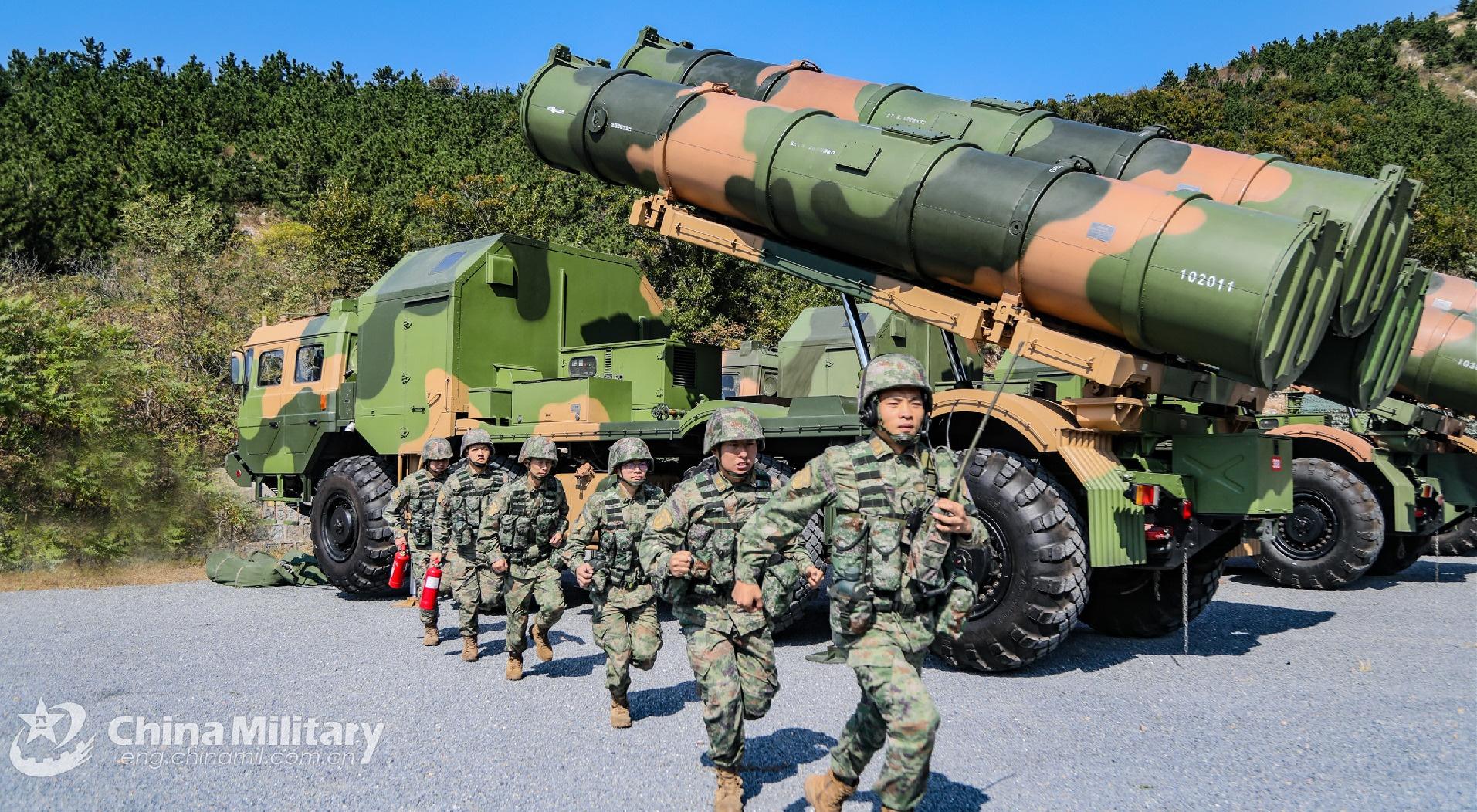Soldier assigned to a coastal missile regiment with the navy under the PLA Northern Theater Command rush to their positions during a land-to-sea training exercise on October 11, 2022. (eng.chinamil.com.cn/Photo by Liu Zihao)