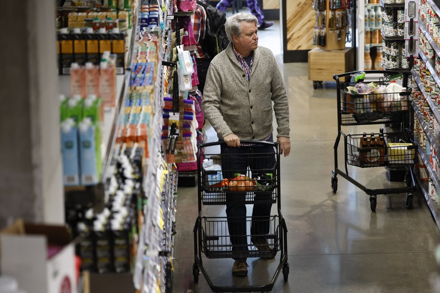 A customer shops at a supermarket in Washington, D.C., the United States, on Oct. 28, 2022. (Photo by Ting Shen/Xinhua)