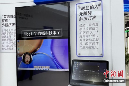 Photo shows an innovative device that enables people to type by just rotating their eyeballs. (Chinanews.com /Wu Tao)