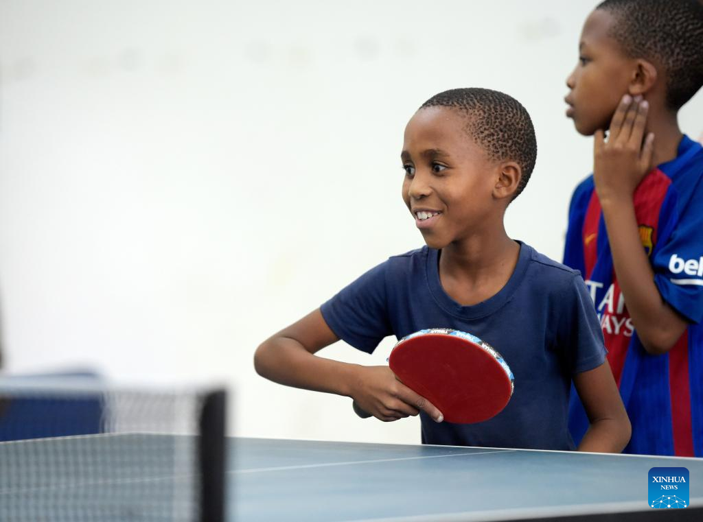 Kids play table tennis at BNYC in Gaborone, Botswana's capital city, Nov. 8, 2022. (Photo by Tshekiso Tebalo/Xinhua)