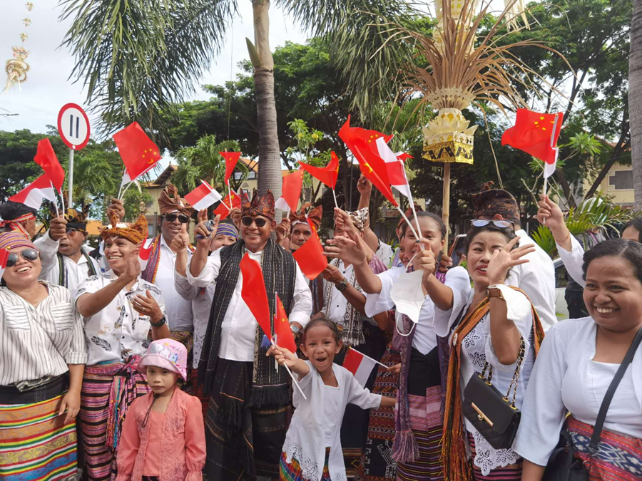 People in Bali give warm welcome to President Xi