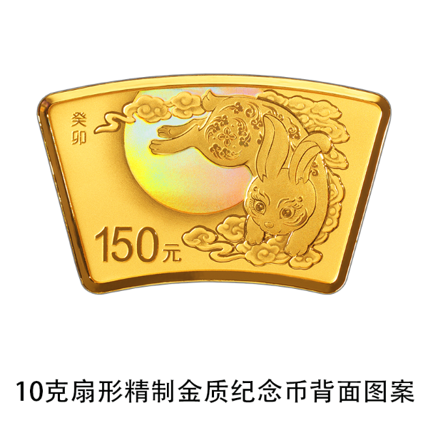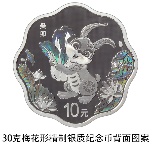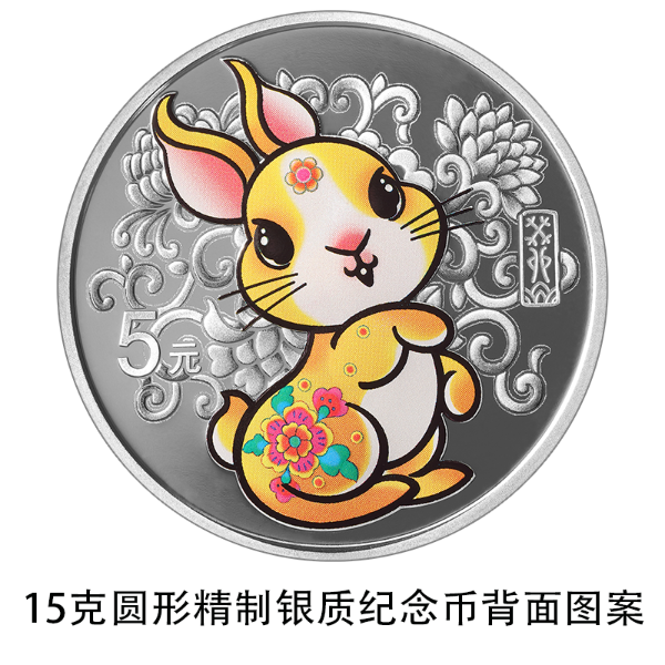 The reverse sides of the coins will bear various images of rabbits, decorated with elements including the moon, auspicious clouds, and the lotus.