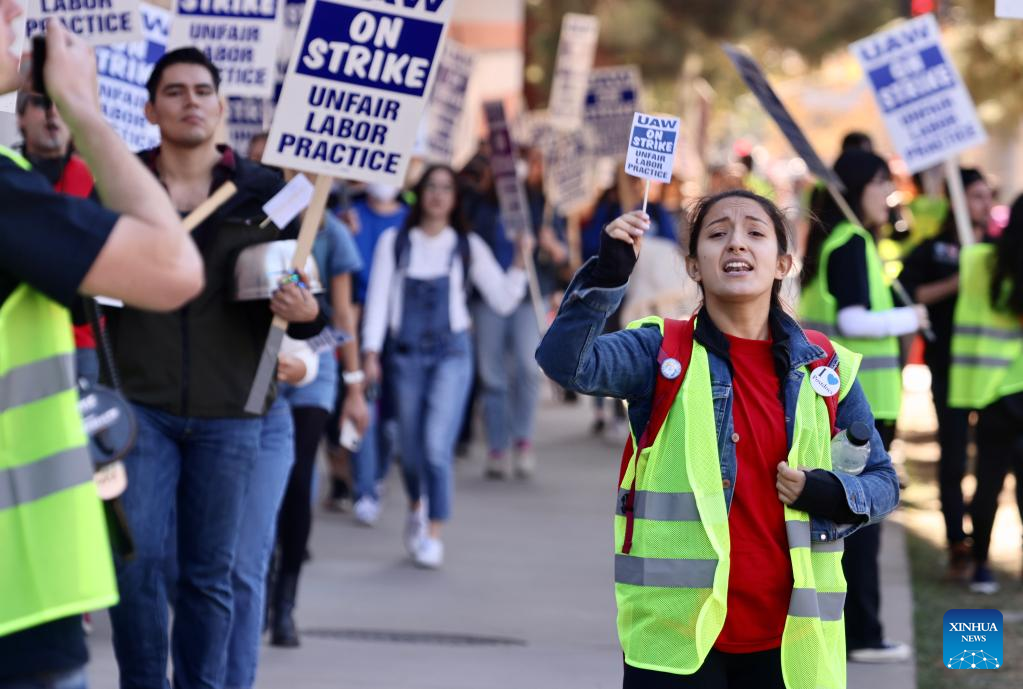 LOS ANGELES, Nov. 14 (Xinhua) -- Tens of thousands of academic workers at the University of California (UC) system went on strike Monday for higher wages and better working conditions.