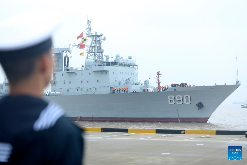 The supply ship Chaohu of the 41st fleet of the Chinese People's Liberation Army Navy returns to a port in Zhoushan, east China's Zhejiang Province, Nov. 15, 2022. A Chinese navy fleet returned to the port city of Zhoushan in east China's Zhejiang Province on Tuesday after completing its mission of escorting civilian vessels in the Gulf of Aden and in the waters off Somalia. (Photo by Jiang Xia/Xinhua)